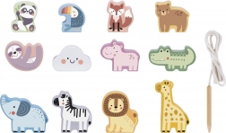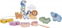 Tato roztomilá sada obsahuje 11 barevných dřevěných zvířátek a veselý mráček, které si děti mohou snadno navlékat na přiložený provázek s dřevěnou špičkou. Každý dílek má přesné otvory pro provlékání, které vedou k trpělivosti a soustředění. Pastelové barvy a líbivý design podněcují fantazii a činí z učení přirozenou součást hry.
