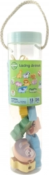 Dílky jsou z kvalitního dřeva a barvené netoxickými barvami. Hladké hrany a odolné provedení zajišťují bezpečnou hru pro děti od 2 let.