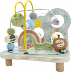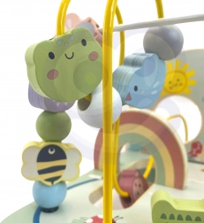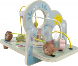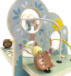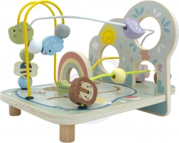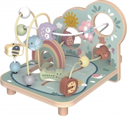 Lesní korálkové bludiště z masivního dřeva zaujme kvalitním zpracováním, pastelovými barvami a milými ilustracemi zvířátek, duhy a sluníčka. Děti posouvají korálky a tvary po třech křivolakých drahách, trénují přesnost pohybu prstů a soustředění a zažívají radost z dokončení trasy.