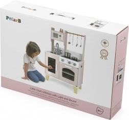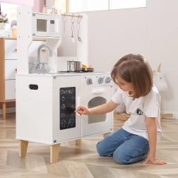 Stylová dřevěná kuchyňka VIGA PolarB přináší dětem hodiny kreativní hry a učení. Obsahuje zlev, troubu, plotýnky, mikrovlnku a lednici s tabulí na vzkazy. Reálné prvky jako otočné knoflíky, otevírací dvířka a praktické kuchyňské doplňky podporují role-play, samostatnost a zodpovědnost při úklidu po vaření.