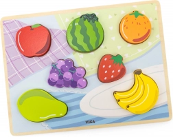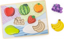 Objevte hravou výuku s dřevěnými puzzly s ovocem od značky Viga. Sada obsahuje pevnou, barevně ilustrovanou podložku a 7 dílků (jablko, meloun, pomeranč, hrozny, jahoda, banány a hruška), které děti vkládají do odpovídajících tvarů. Jasné barvy a srozumitelné obrysy podporují rozpoznávání tvarů a barev.