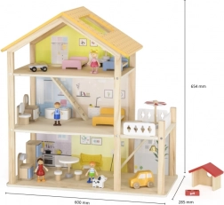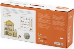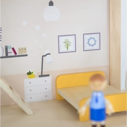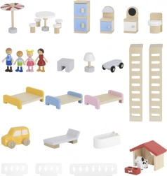 Díky robustní dřevěné konstrukci a hladkým hranám je hra bezpečná a příjemná. Až 32 prvků rozvíjí představivost, jemnou motoriku i sociální dovednosti. Ideální pro panenky do 10 cm.