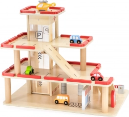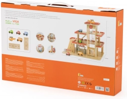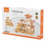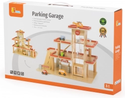 Objevte dřevěný parkovací garage VIGA pro děti od 3 let – robustní třípatrový set s ručním výtahem, myčkou a heliportem. Součástí jsou 4 autíčka a vrtulník, realistické detaily a odolné dřevěné provedení pro kreativní hru a rozvoj jemné motoriky.
