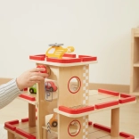 Děti snadno zvednou autíčka mezi patry pomocí mechanického výtahu – podporuje koordinaci a jemnou motoriku.
