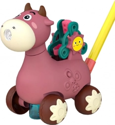 Roztomilé chodítko WOOPIE ve tvaru růžové kravičky pomůže dětem trénovat první krůčky a přitom se skvěle bavit. Nabízí tvoření bublin, melodie a otáčivý váleček s písmeny pro hravou výuku. Díky pohodlné rukojeti je vhodné pro malé ruce a podporuje koordinační a motorické dovednosti.