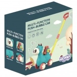 Chodítko kravička od značky WOOPIE je ideální pomocník při učení chůze. Děti si mohou před sebou vést svou oblíbenou kravičku, která při jízdě vypouští bubliny přímo z pusy. Stačí našroubovat nádobku s roztokem (v balení jsou 2 pojemníčky) a zábava může začít. O atmosféru se postarají příjemné melodie, které lze zapnout i vypnout tlačítkem.