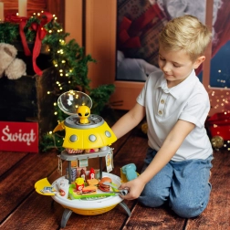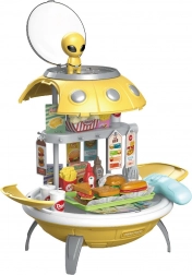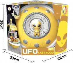 UFO Fast Food je třífunkční hračka, která zaujme malé průzkumníky a kreativní děti. Projektor umožňuje dětem učit se názvy planet a rozšiřovat své znalosti o vesmíru. Tento inovativní batoh s mimozemšťanem je připraven k přenášení do světa nekonečných dobrodružství. A co víc, rozkládací design umožňuje transformaci do hravé fast food restaurace, kde děti mohou generovat bezpočet interaktivních her.