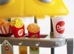 Děti mohou hravě imitovat prodej v rychlém občerstvení. Souprava obsahuje hračky jako burger, hranolky, nápoje, a mnoho dalšího.