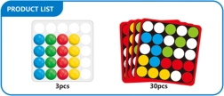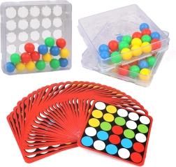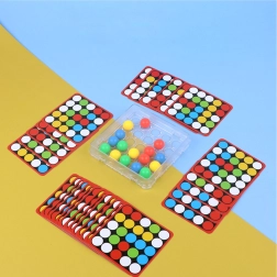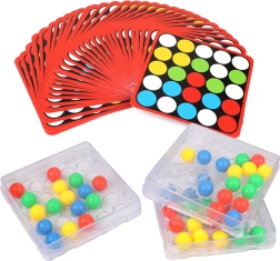 Hra Rychlé prsty přichází s jedinečnou základnou s kruhovými otvory, které umožňují pohyb barevných kuliček jen za pomoci prstů. U každé karty je z druhé strany univerzální černobílý šablon, který si děti mohou domalovat dle své fantazie a vytvořit vlastní mozaiku.