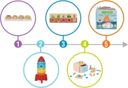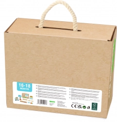 Dřevěná sada určená k podpoře kognitivního rozvoje a jemné motoriky pro děti od 16 měsíců.