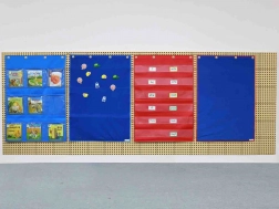 Nástěnný kapsář nabízí tři řady kapes, ve kterých můžete úhledně vystavit učebnice, fotografie nebo obrázky. Umožňuje efektivní organizaci a prezentaci výukových materiálů.