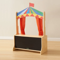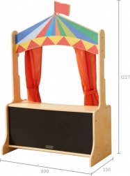 Univerzální dřevěné divadélko a prodejní stánek od značky MASTERKIDZ promění každý dětský pokoj v scénu plnou fantazie. Nabízí barevnou horní markýzu, rolovací červené závěsy, prostorný pult, magnetickou černou tabuli a úložný prostor. Skvělé pro loutkové představení, hru na obchod i role-play aktivity a podporuje kreativitu, představivost a sociální dovednosti dětí od 3 let.