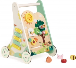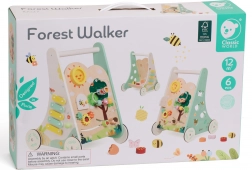 Dřevěné chodítko CLASSIC WORLD Forest Walker podpoří první krůčky i každodenní objevování. Robustní dřevěná konstrukce poskytuje jistotu a stabilitu, zatímco tiché gumové obruče kol zajišťují hladký a nehlučný pohyb po podlaze. Barevné interaktivní prvky – xylofon, ozubená kolečka, posuvné korálky či labyrinty – přirozeně motivují dítě ke hře a učení.