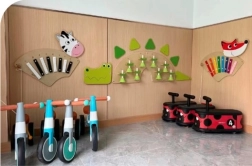 Nástěnný design šetří místo a vytváří atraktivní zónu pro společnou hru a rozvoj hudební výchovy.