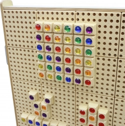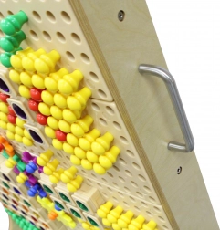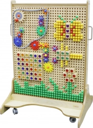 Tato dřevěná STEM tabule nabízí dětem bohatý prostor pro tvoření vzorů, stavbu kuličkových drah, ozubených převodů i dalších konstrukcí. Oboustranné provedení podporuje skupinovou hru a spolupráci, zatímco pevná konstrukce z kvalitního dřeva zajišťuje dlouhou životnost.