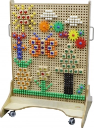 Díky mobilní základně na kolečkách tabuli snadno přemístíte tam, kde je zrovna potřeba. Je plně kompatibilní se širokou škálou příslušenství MASTERKIDZ pro STEM tabule (kolíky, „krystaly“, šroubky, převody, trubky, písmena a číslice aj.), takže můžete výuku i hru průběžně rozšiřovat.