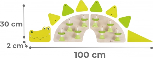 Dřevěná hudební nástěnná tabule krokodýlek od Classic World. Podporuje hudební rozvoj dětí, snadná montáž, bezpečné netoxické materiály. Od 3 let.