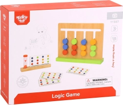 Zábavná logická hra od TOOKY TOY rozvíjí rozpoznávání barev, logické myšlení a jemnou motoriku. Děti posouvají barevné disky podle vzorů z karet a snaží se je správně sestavit v limitu klepsydry. Součástí je dřevěná rámová deska, klepsydra a 15 oboustranných karet se 30 vzory. Bezpečné, odolné a ideální pro děti od 3 let.
