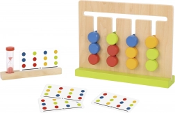 Tato vzdělávací hra přináší dětem radost z objevování a trénuje soustředění. Úkolem je podle vybrané karty přesouvat barevné disky do správného pořadí a zvládnout to v čase, který odměřuje klepsydra. Dřevěné provedení je příjemné do ruky a povrch je opatřen netoxickými barvami.