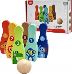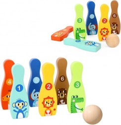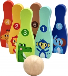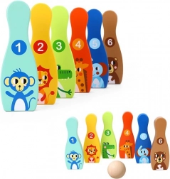 Dřevěné dětské kuželky se zvířátky 6 ks + míček TOOKY TOY