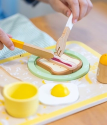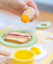 Nechte své děti ponořit se do hřejivé a kreativní zábavy s dřevěným snídaňovým setem od Classic World. Tento set nejen že poskytuje spoustu herních možností, ale také pomáhá dětem rozvíjet sociální dovednosti a dobré stolovací návyky. Ideální pro děti od 3 let, tento set obsahuje talíř, příbor, hrnek, sůl, pepř, vajíčko, topinky, plátek slaniny, ubrousek a servírovací tácek.