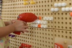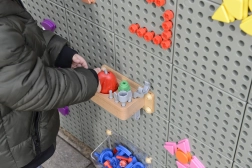 Děti mohou na tabuli STEM šroubovat, montovat a tvořit různé vzory a obrázky.