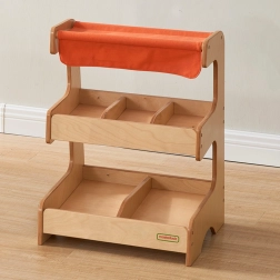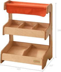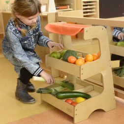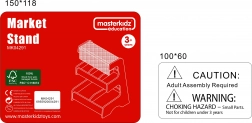 Dřevěný tržní stánek Masterkidz s materiálovou střechou nabízí dvouúrovňovou konstrukci pro maximální flexibilitu. Na první úrovni najdete tři komory, ideální pro různé druhy produktů.