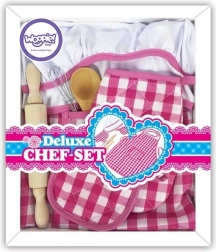 Sada obsahuje váleček, dřevěnou lžičku a kovovou metličku, což umožňuje dětem interaktivně se zapojit do kuchyňských aktivit.