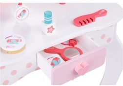 Dětský toaletní stolek od značky Tooky Toy je perfektním doplňkem pro každý dětský pokoj. Vyrobený z kvalitního dřeva a ozdobený bílými a růžovými detaily, tento set splní sen každé malé princezny.