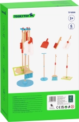 Úklidová sada od značky Tooky Toy naučí děti zodpovědnosti a umožní jim napodobovat dospělé při každodenních povinnostech. Díky praktickému stojanu s modrou základnou je možné nástroje snadno skladovat.