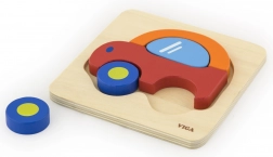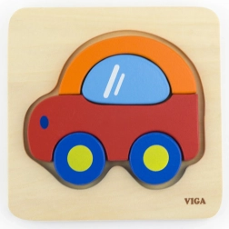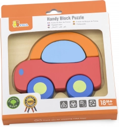 Dřevěný blokový puzzle ve tvaru auta, značka VIGA, nabízí odolnost a barevnou přitažlivost.