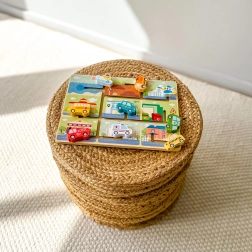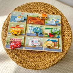 Děti posouvají sanitku, policejní auto, autobus či loď po dráhách a umisťují je do tematických scén. Procvičí logické myšlení a rozšíří slovní zásobu o dopravní prostředky.