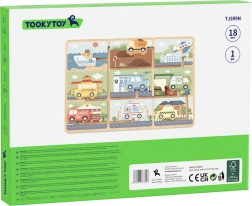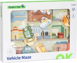 Objevte hravou dřevěnou hračku pro nejmenší – labyrint s vozidly od TOOKY TOY. Děti posouvají barevné autíčko, autobus, sanitku či loď po vyznačených dráhách a hledají jejich správná stanoviště. Podporuje jemnou motoriku, koordinaci ruka–oko, logické myšlení i poznávání dopravních prostředků a záchranných složek.