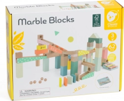 Dřevěný set pro stavbu kuličkové dráhy značky Classic World je vhodný pro děti od 3 let. Tato hračka obsahuje 62 kusů různě tvarovaných a velkých bloků, které nabízejí nekonečné možnosti stavby kreativních drah. Pastelové barvy a netoxické nátěry zajišťují bezpečnost a estetický vzhled hračky.