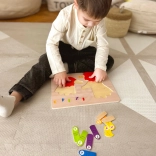 Hračka je vyrobena z odolného dřeva s hladkými hranami, vhodná pro předškoláky od 3 let. Podporuje jemnou motoriku, souhru oko–ruka, soustředění a kreativitu. Díky výrazným barvám a jasnému značení udrží pozornost a dělá z učení zábavnou hru.