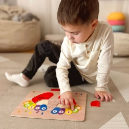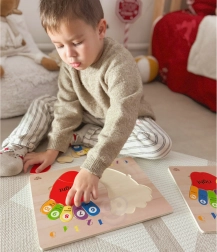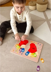 Tato puzzle deska pomáhá dětem naučit se počítat a rozlišovat barvy prostřednictvím interaktivního hraní.