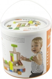 Součástí balení je praktický kbelík s uchem pro pohodlné uložení i přenášení. Dílky jsou vyrobeny z kvalitního lakovaného dřeva a barveny netoxickými barvami ve výrazných odstínech. Hračka rozvíjí jemnou motoriku, prostorovou představivost, logické myšlení a podporuje kreativitu.