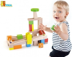Tato dřevěná kuličkodráha od značky VIGA přináší dětem hodiny zábavy i učení. Z různorodých kostek, ramp, sloupků a trychtýře snadno postavíte nespočet tratí, po kterých se kuličky plynule kutálejí. Set obsahuje také dekorativní a hravé prvky, jako jsou schůdky či medvídci, které dodají stavbám charakter a podporují vyprávění příběhů.