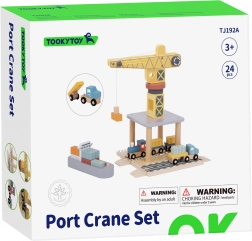 Objevte fascinující svět dopravy s dřevěnou sadou přístavního jeřábu od Tooky Toy! Tato precizně zpracovaná hračka přenese děti do středu přístavního ruchu, kde mohou manipulovat s kontejnery za pomoci velkého otočného jeřábu, a přepravovat náklady pomocí vlaku, kamionů a lodí. Sada je barevná, trvanlivá a detailně propracovaná, což zajišťuje hodiny kreativní zábavy.