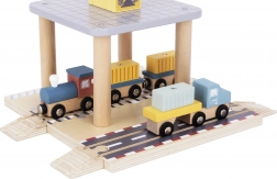 Umožňuje dětem simulovat různé přístavní operace díky pohyblivým částem, jako jeřáb, vlak a loď.