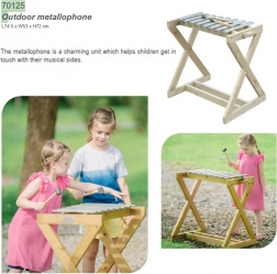 Objevte radost z hudby pod širým nebem. Robustní dřevěný rám a kovové klávesy zaručují čistý, rezonantní tón a dlouhou životnost i při častém venkovním používání. Metalofon je ideální pro školky, hřiště i domácí zahrady – děti si procvičí koordinaci, sluch a rytmus, zároveň posílí sebedůvěru a odvahu vystoupit s vlastní melodií.