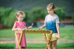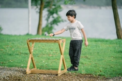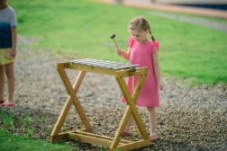 Instrument je vyroben z kvalitního dřeva ze zodpovědných zdrojů a je koncipován tak, aby odolal dešti i slunci. Díky dvěma paličkám mohou hrát i dvě děti najednou a objevovat spolu kouzlo hudební spolupráce.