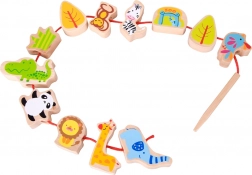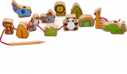 Součástí je 12 dřevěných korálků a šňůrka s dřevěnou jehlou. Hladké hrany a příjemná velikost zajišťují pohodlné a bezpečné používání.