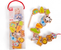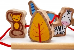 Korálky jsou příjemné do ruky, mají hladké hrany a výrazné barvy pro snadnější rozlišování tvarů. Šňůrka s dřevěnou jehlou usnadňuje provlékání a učí děti jednoduchému řazení, třídění a sekvencím – základům pro další rozvoj logiky a předmatematických dovedností.