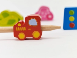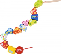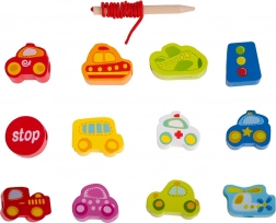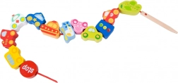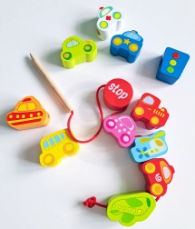 Objevte chytrou hračku, která spojuje učení a zábavu. Dřevěné korálky ve tvaru aut, autobusu, letadla či dopravních značek se snadno navlékají na šňůrku s dřevěným zakončením. Děti si při hře procvičí jemnou motoriku, přesnost pohybů i rozpoznávání barev a tvarů.
