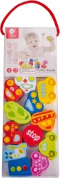 Barevná vozidla a dopravní značky přibližují dětem svět silnic. Při skládání pořadí korálků procvičí barvy, tvary i základní pravidla provozu.