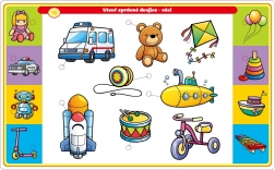 Balení obsahuje 10 oboustranných listů s úkoly a 2 plastová ukazovátka pro přesné označení odpovědí. Hra je navržena pro malé školáky a předškoláky od 3 let a podporuje samostatnost, koncentraci i jemnou motoriku.