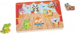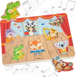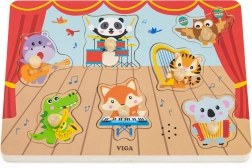 Vstupte do světa hudby a učení s originálním dřevěným puzzlem od značky VIGA, kde zvířecí muzikanti rozzáří fantazii vašich dětí. Po zvednutí a znovu umístění dílku děti uslyší realistický zvuk hudebního nástroje, což podpoří učení skrze zkušenost.