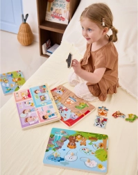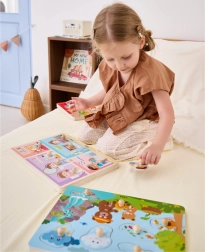 Barevné puzzle představují různorodé přírodní scény a zvuky, které děti okamžitě zaujmou.