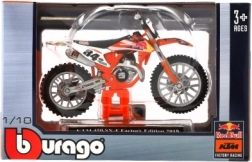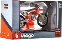 Motocykl Bburago vyniká svým detailním zpracováním, které přináší autentický vzhled biku KTM 450 SX-F Factory Edition 2018.